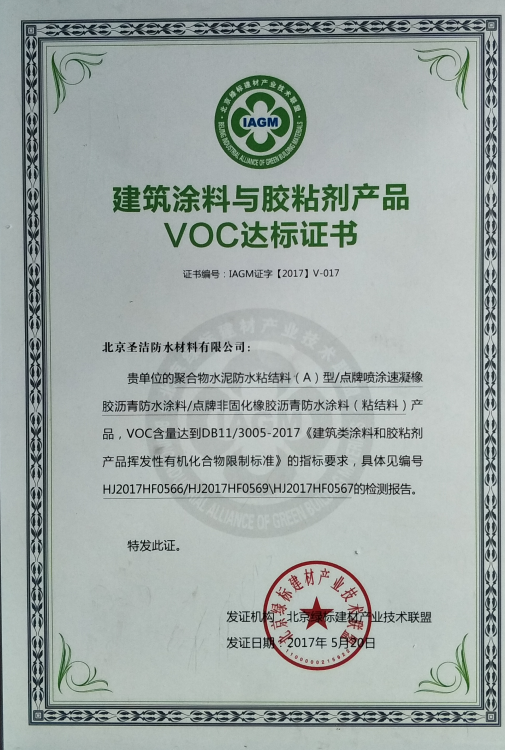 • 建筑涂料與膠粘劑產品VOC達標證書