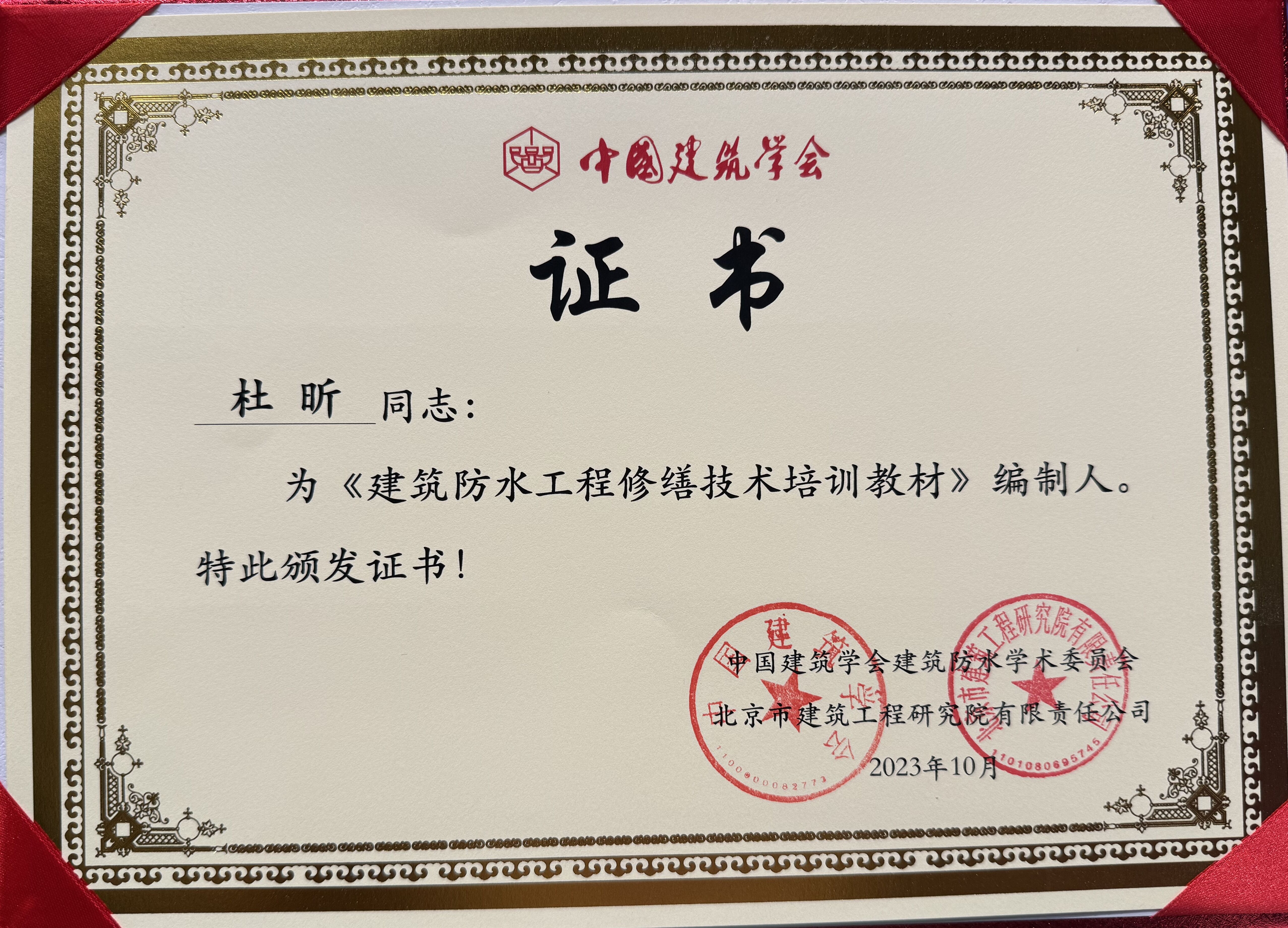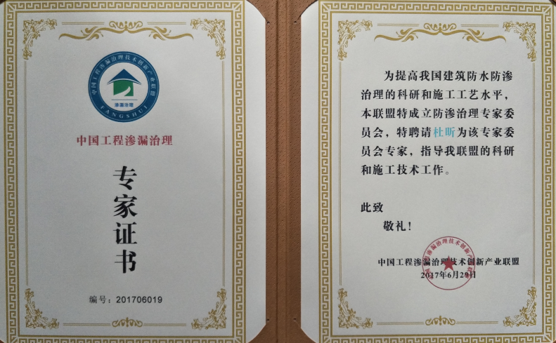 • 杜昕中國工程滲漏治理專家證書