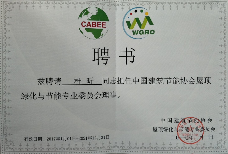 • 杜昕中國建筑節能協會屋頂綠化與節能專業委