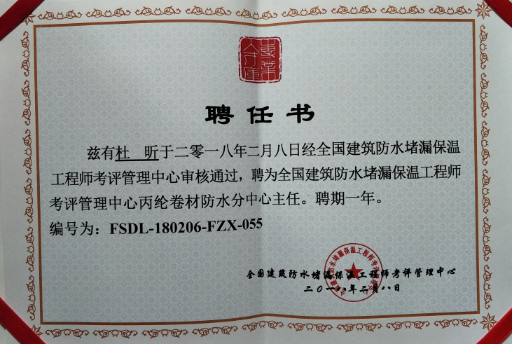 • 杜昕全國建筑防水堵漏保溫工程師考評管理中