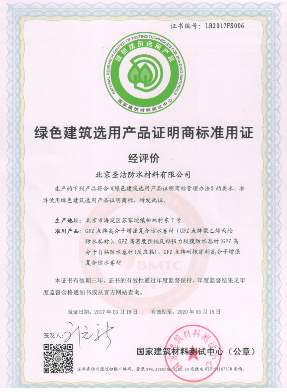 • 綠色建筑選用產品證明商標準用證
