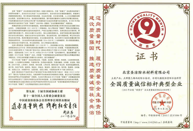 • 進京防水產品供應及施工誠信單位