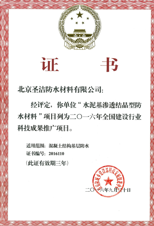 • “水泥基滲透結晶型防水材料”全國建設行業