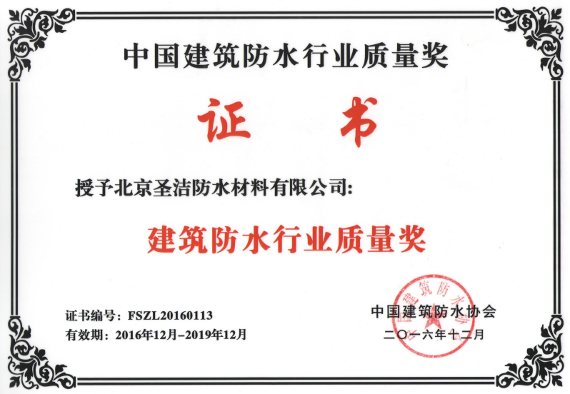 • 建筑防水行業質量獎