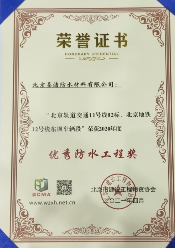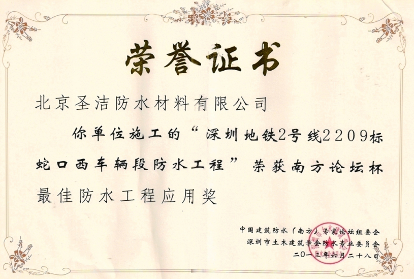 • “深圳地鐵9號線9105標段防水工程”獲
