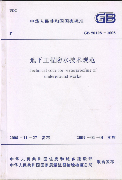 • GB 50108—2008《地下工程防水