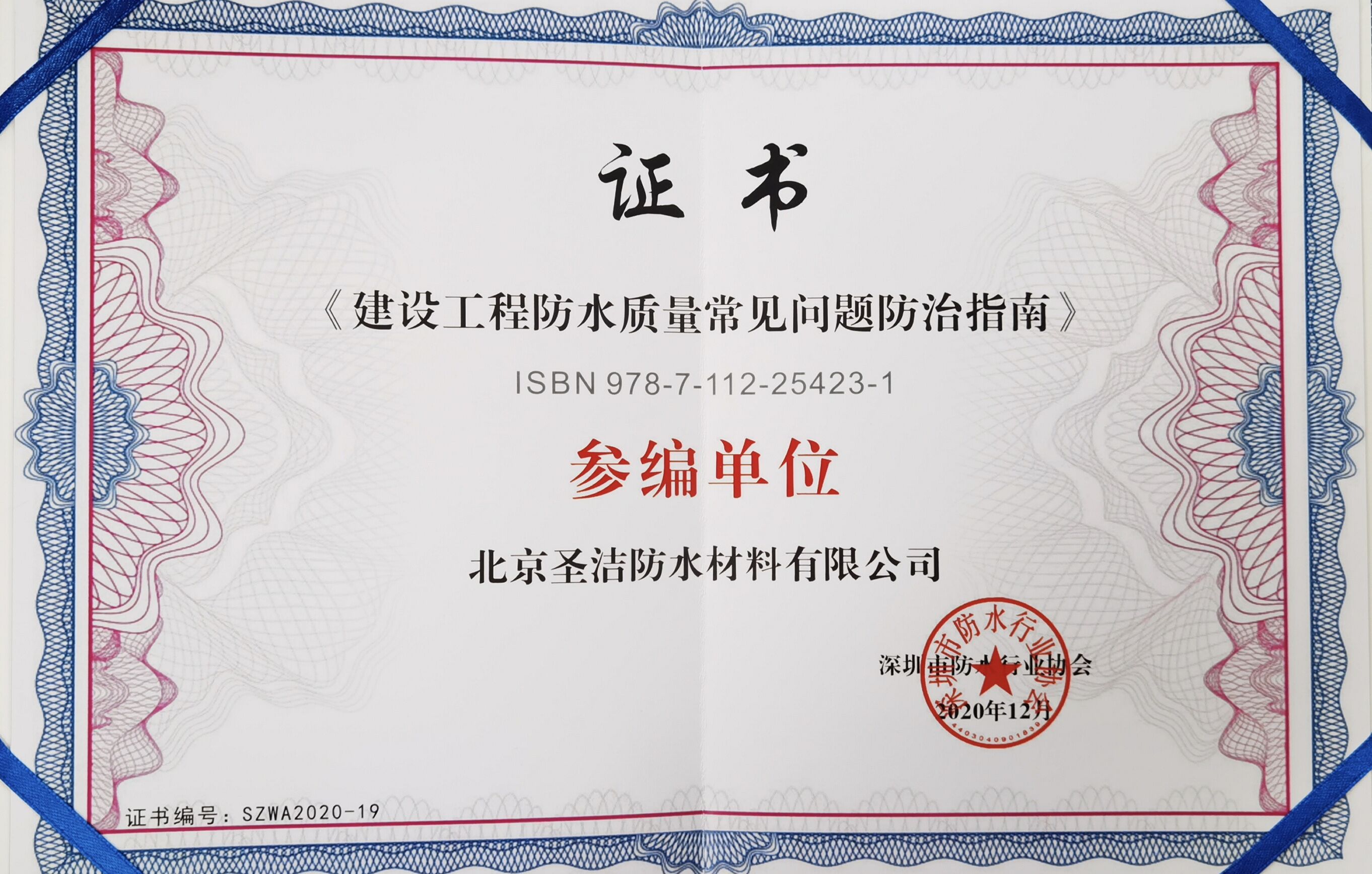 • 建筑工程防水修繕技術培訓教材參編單位證書