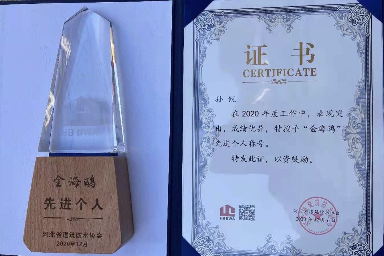 • 河北省建筑防水協會‘金海鷗’先進個人稱號