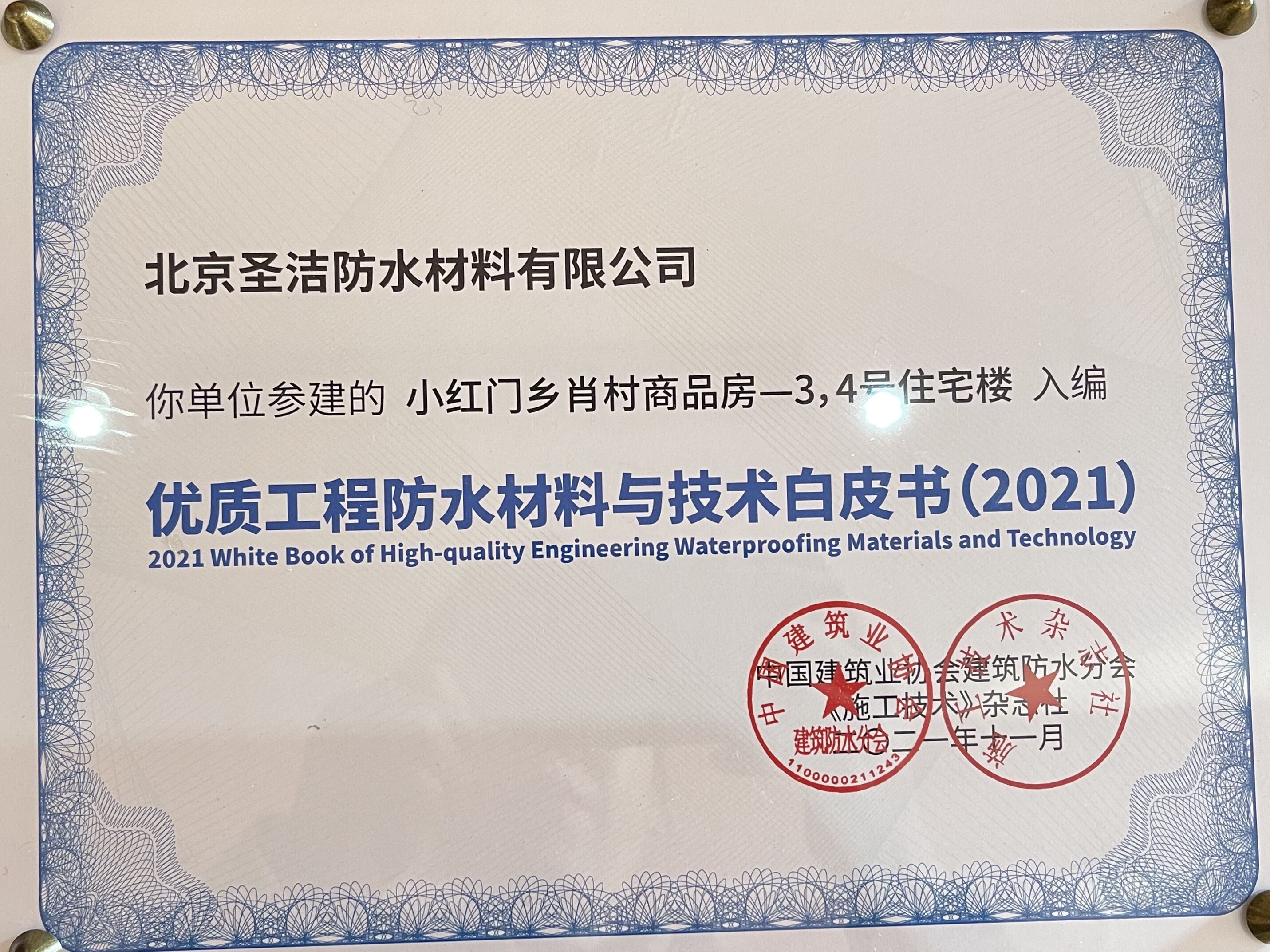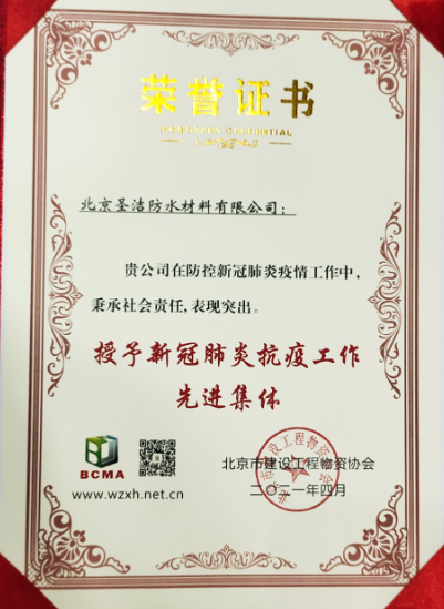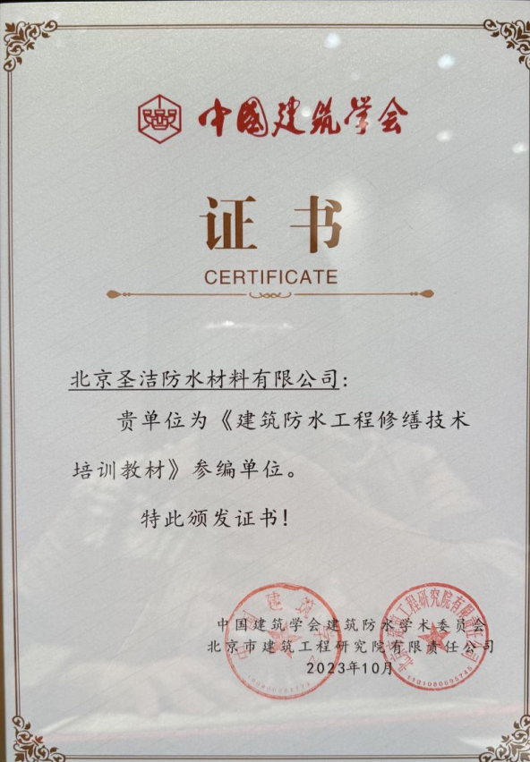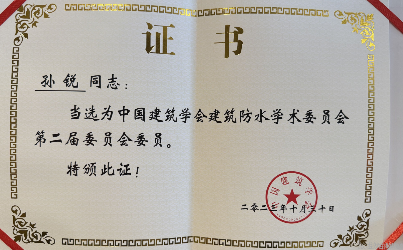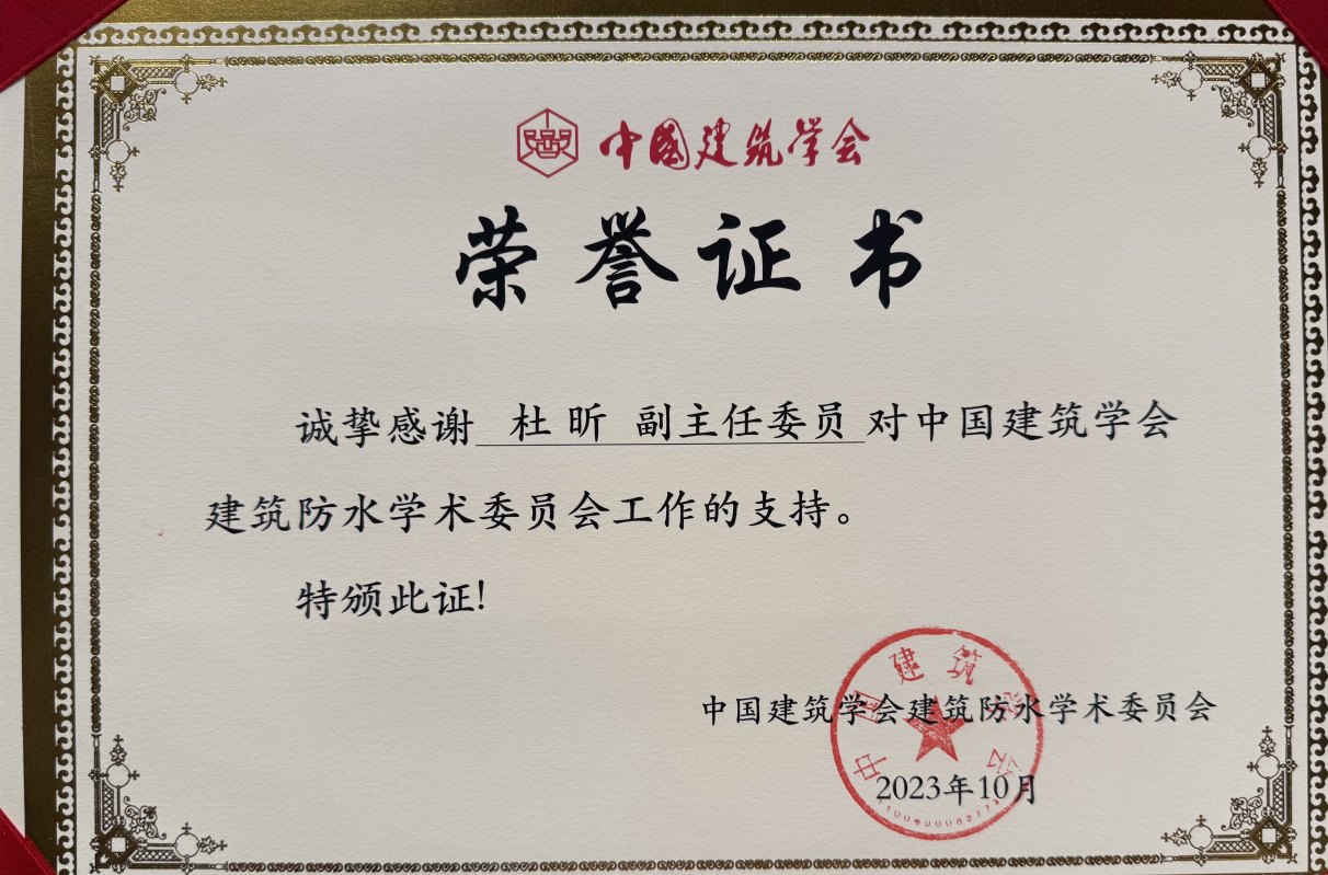 • 中國建筑學會建筑防水學術委員會榮譽證書