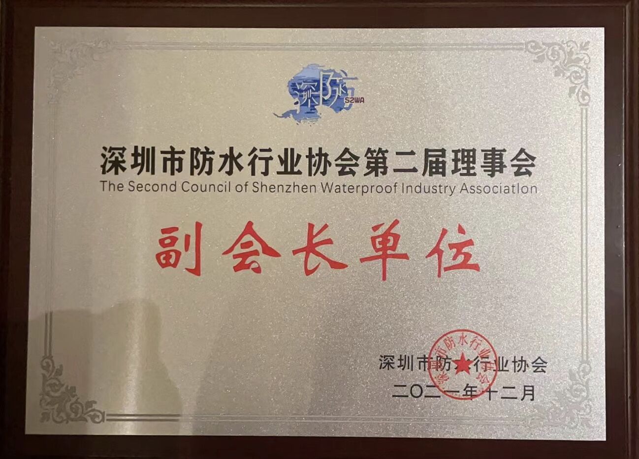 • 深圳市防水行業協會第二屆理事會副會長單位