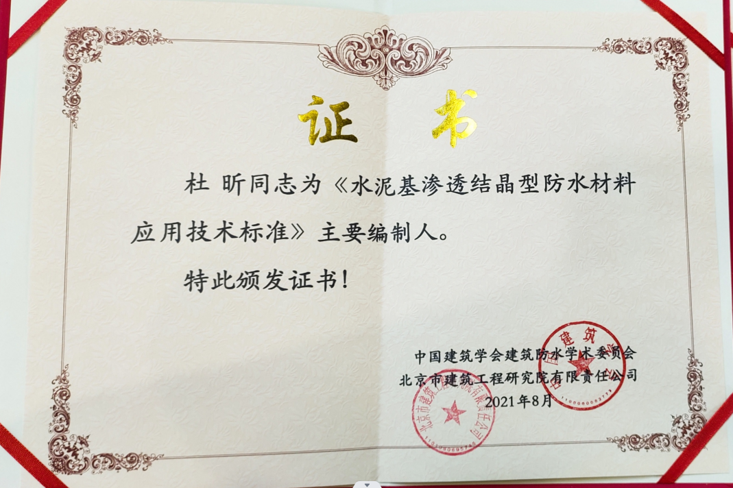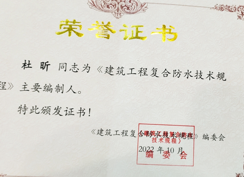 • 杜昕建筑工程復合防水技術規程主要編制人證