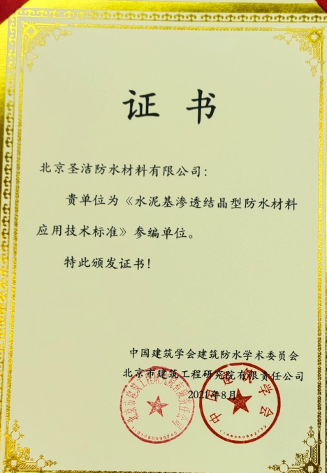 北京圣潔防水材料有限公司成立于1999年,注冊資金2.53億元。致力于系統解決防水問題的探索和研究,經過二十多年的積累與沉淀,圣潔防水已發展成為集產品研發、生產、銷售、施工于一體的規模化公司,是中國防水二十強企業,擁有國家專業防水一級資質。 圣潔防水生產基地占地面積2萬平米,全體員工320人,其中施工人員280人,為員工提供五險保障,公司是中國建筑防水協會常務理事單位、中國建筑業協會建筑防水分會、中國建筑學會、中國質量檢驗協會建材專業委員會會員單位,通過了ISO9001國際質量體系認證、ISO14001環境管理認證。被中國建材市場協會譽為“全國建材系統質量、服務、信譽AAA企業”。歷年國家標準《地下工程防水技術規范》、《地下防水工程質量驗收規范》和《屋面工程技術規范》、《屋面工程質量驗收規范》的參編單位,截至目前為止,圣潔防水主編或參編的國標、行標、地標、團標已達106本。