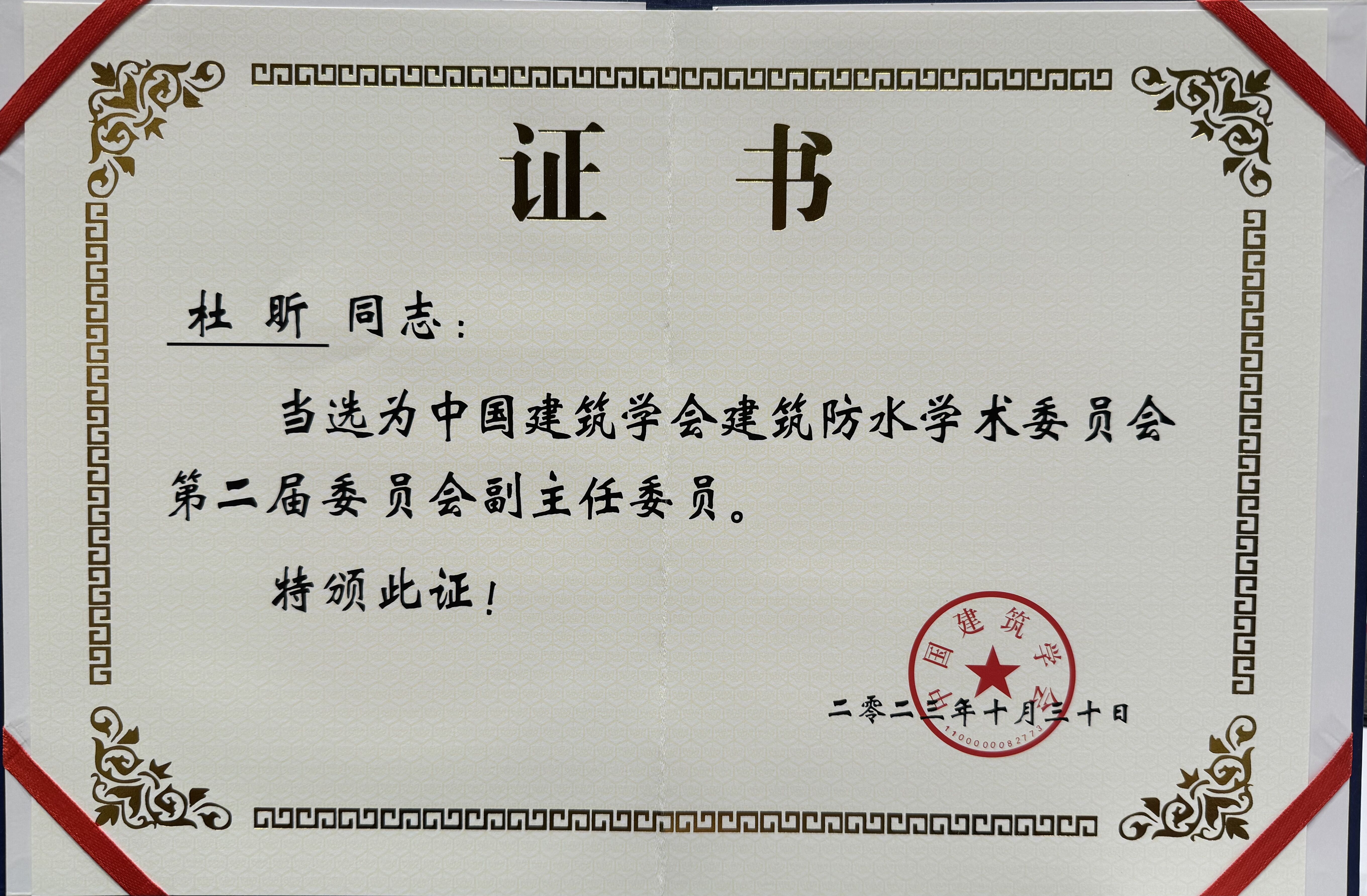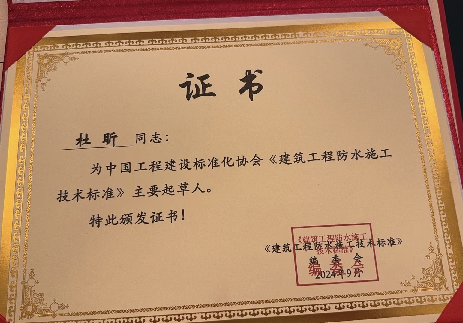 • 杜昕中國建筑防水科技創新先鋒人物證書