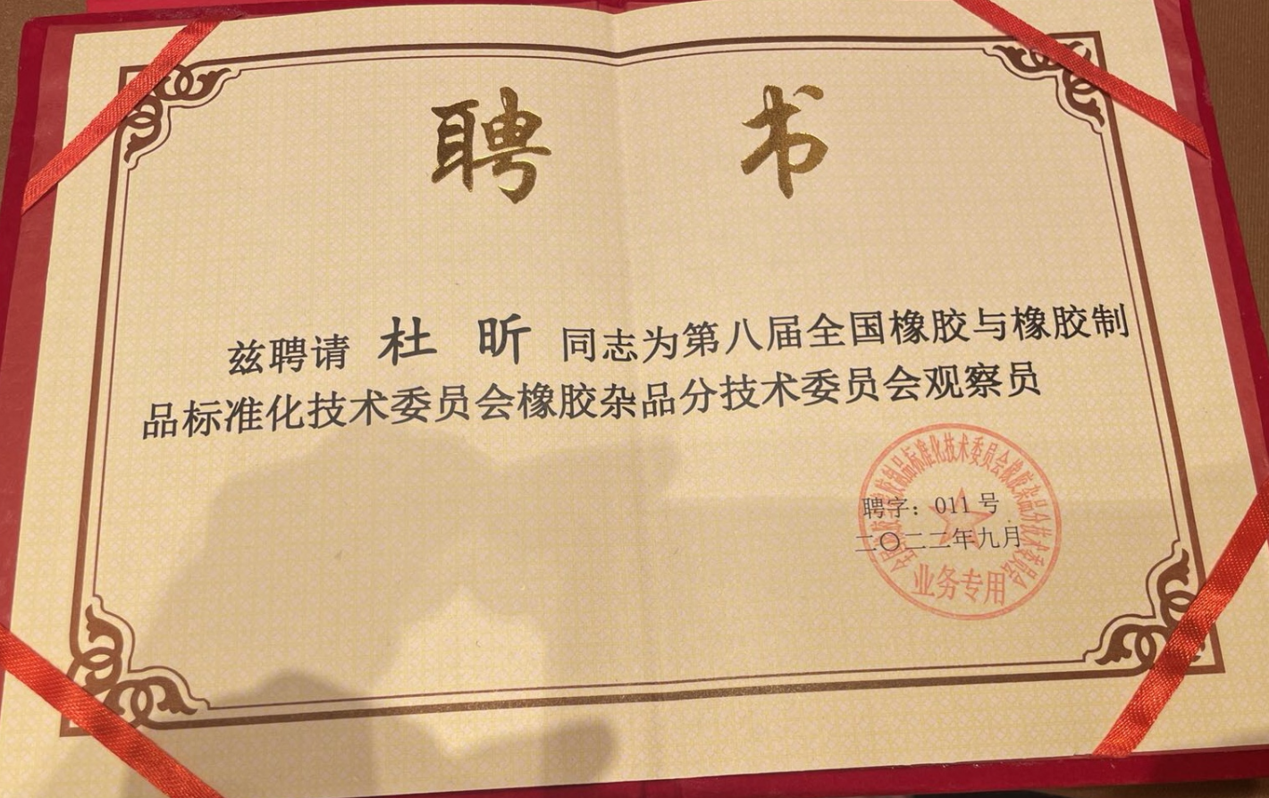 • 杜昕為第八屆全國橡膠與橡膠制品標準化技術