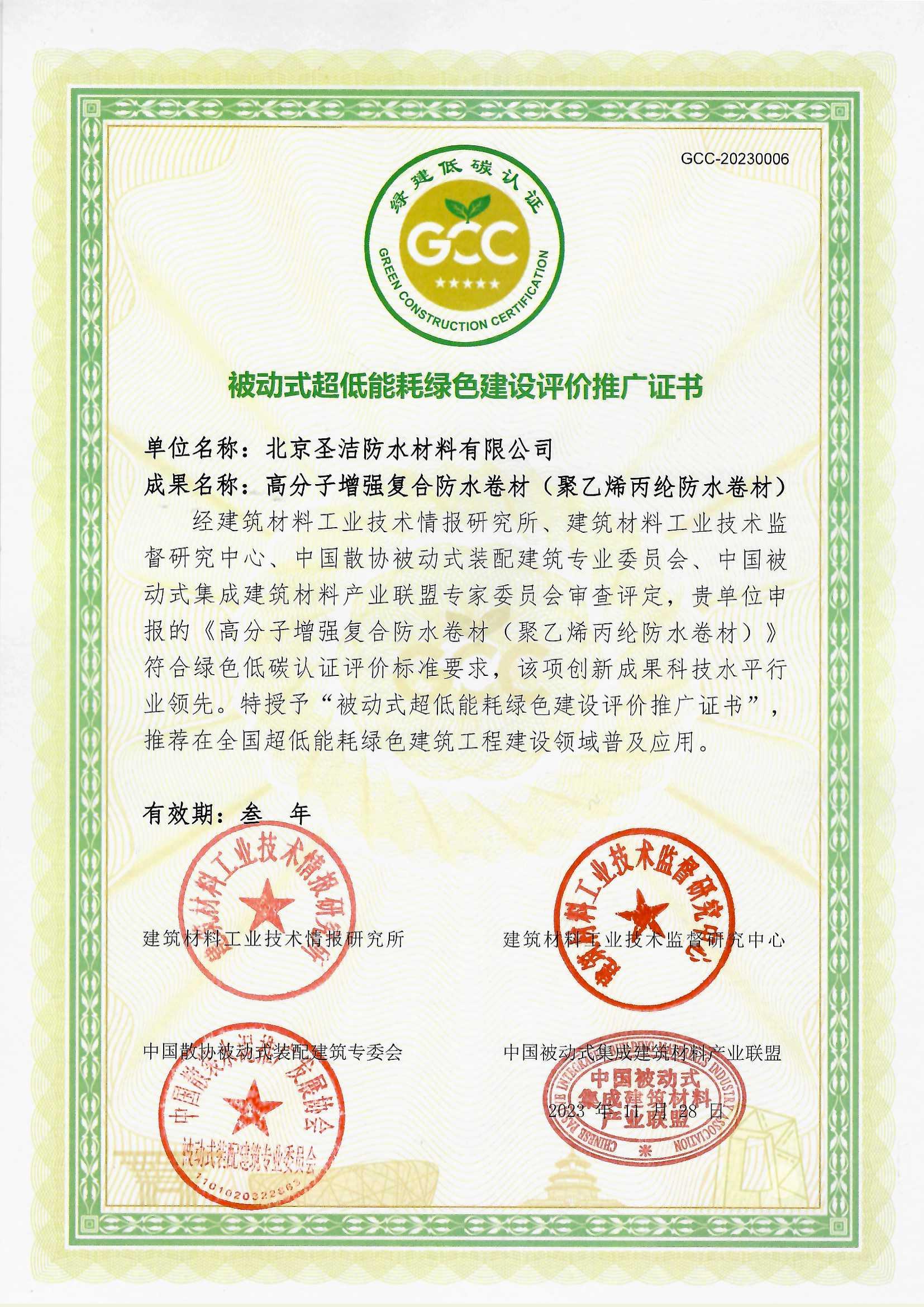• 被動式超低能耗綠色建設評價推廣證書